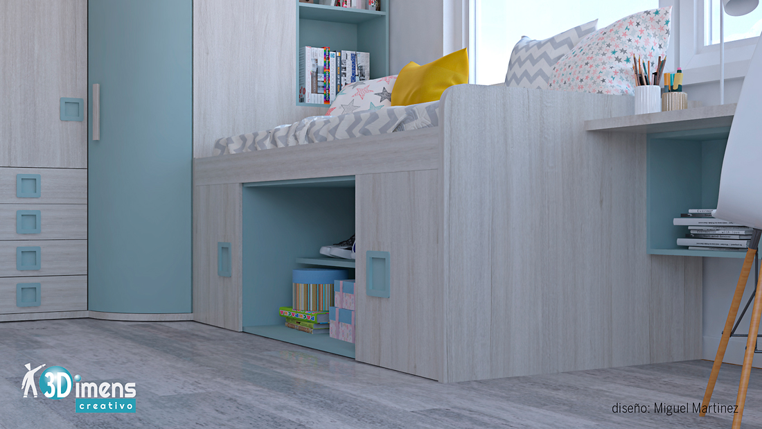 3D STUDIO MAX, Cama compacta, Dormitorio Infantil, Dormitorio Juvenil, Vray